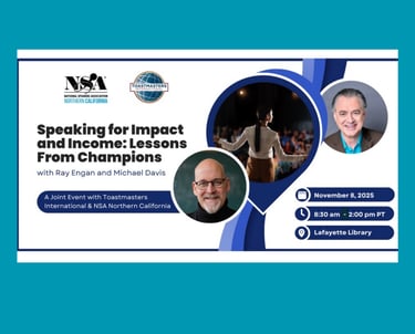 The National Speaker's Association will be featuring Angeli Raven Fitch (2nd runner up World Championship of Public Speaking 2024) who will deliver her speech "Replaced by Sophia". Popular excerpt from the speech: "Fired for being human, rehired for being human, what has this world come to?"